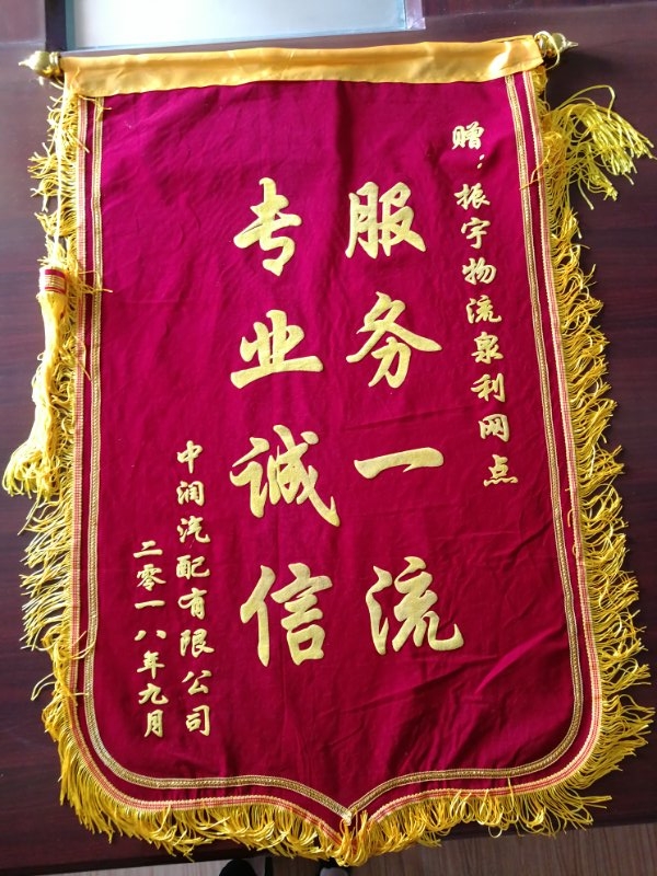振宇物流泉利網(wǎng)點(diǎn)服務(wù)深得贊許,獲中潤汽配有限公司贈送錦旗!