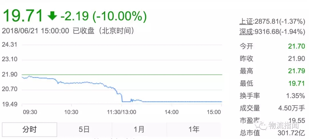 濟南物流:申通快遞午后閃崩封死跌停板