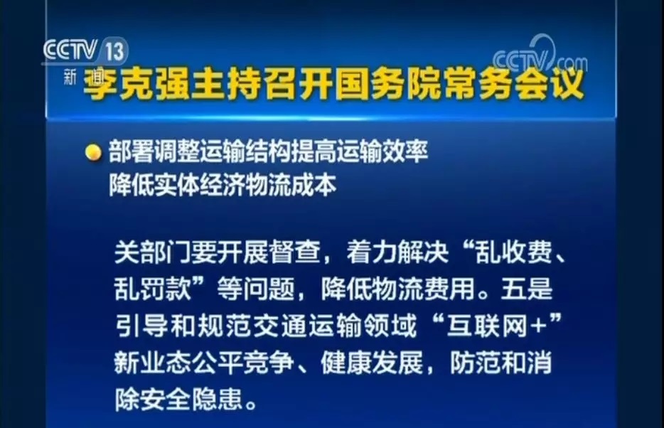 國務(wù)院總理李克強(qiáng)6月27日主持召開國務(wù)院常務(wù)會(huì)議,聽取深入推進(jìn)“互聯(lián)網(wǎng)+農(nóng)業(yè)”促進(jìn)農(nóng)村一二三產(chǎn)業(yè)融合發(fā)展情況匯報(bào);部署調(diào)整運(yùn)輸結(jié)構(gòu)提高運(yùn)輸效率,降低實(shí)體經(jīng)濟(jì)物流成本。會(huì)議指出,調(diào)整運(yùn)輸結(jié)構(gòu)、提高綜合運(yùn)輸效率,降低全社會(huì)物流成本,對(duì)提升實(shí)體經(jīng)濟(jì)競(jìng)爭(zhēng)力至關(guān)重要。