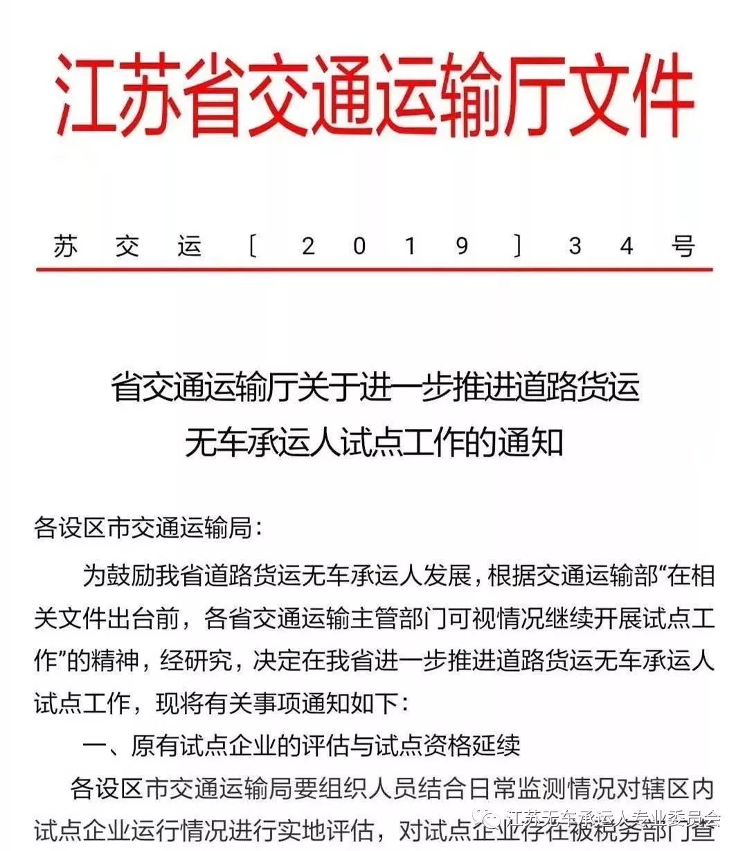 濟(jì)南物流公司:重磅!關(guān)于無(wú)車(chē)承運(yùn)試點(diǎn) 江蘇省交通廳發(fā)文